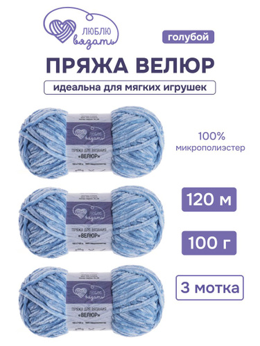 Пряжа для вязания Велюр, 100 г, 120 м, 3 шт, Люблю вязать, 513 голубой