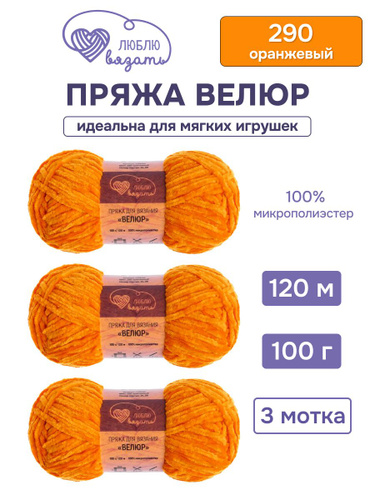 Пряжа для вязания Велюр, 100 г, 120 м, 3 шт, Люблю вязать, 290 оранжевый