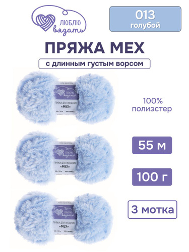 Пряжа меховая для вязания Мех, 100 г, 55 м, 3 шт, Люблю вязать, 013 голубой