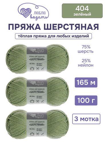 Пряжа для вязания Шерстяная, 100 г, 165 м, 3 шт, Люблю вязать, 404 зеленый