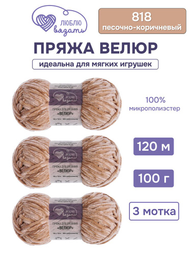 Пряжа для вязания Велюр, 100 г, 120 м, 3 шт, Люблю вязать, 818 песочно-коричневый