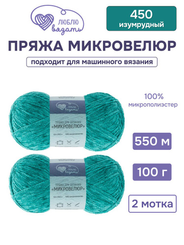 Пряжа для вязания Микровелюр, 100 г, 550 м, 2 шт, Люблю вязать, 450 изумрудный