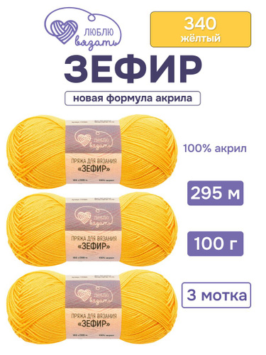 Пряжа для вязания Зефир, 100 г 295 м, 3 шт, Люблю вязать, 340 желтый