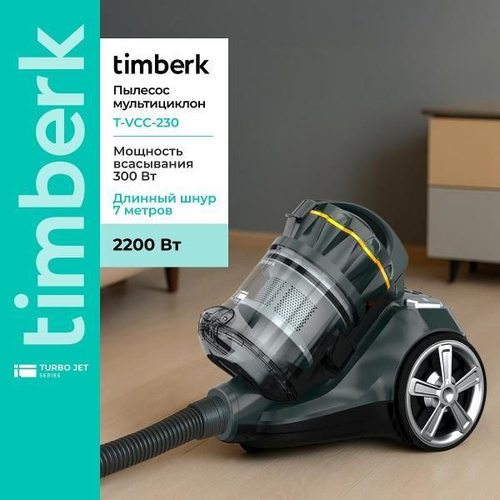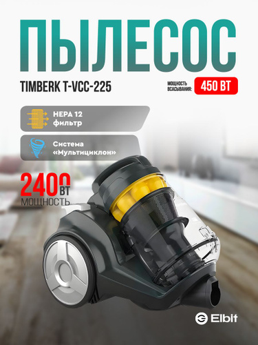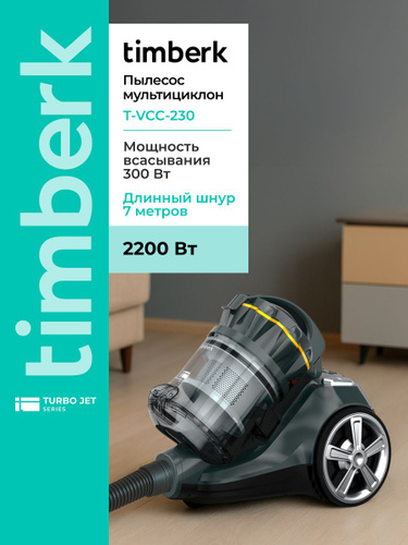 Пылесос для дома Timberk T-VCC-225, циклон, 2400Вт, 2,5 литра, контейнерный, серый