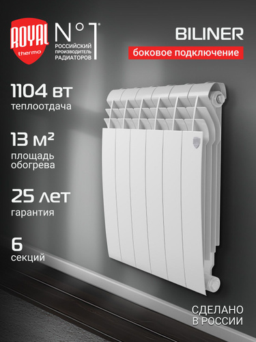 Радиатор отопления биметаллический Royal Thermo BILINER B 500 Белый - 6 секц., боковое подключение