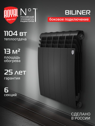 Радиатор отопления биметаллический Royal Thermo BILINER B 350 Чёрный - 6 секц., боковое подключение