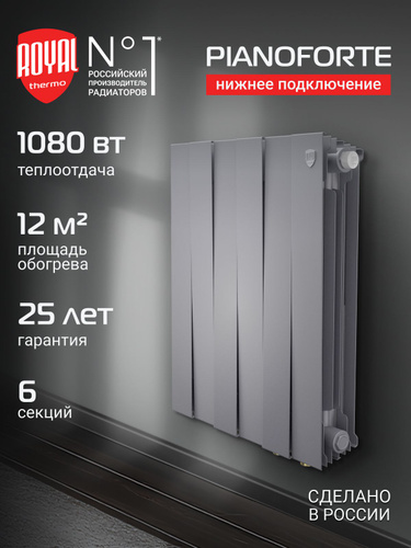 Радиатор биметаллический Royal Thermo PianoForte 500 Серебристый - 6 секц.