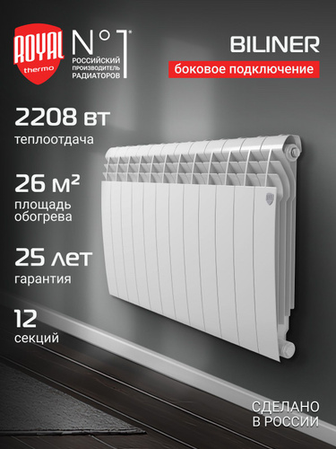 Радиатор отопления биметаллический Royal Thermo BILINER B 500 Белый - 12 секц., боковое подключение