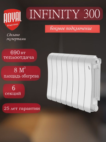 Радиатор биметаллический Royal Thermo Infinity 300 Bianco Traffico - 6 секц., боковое подключение