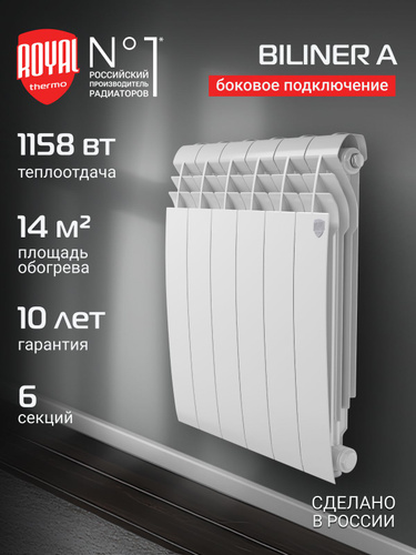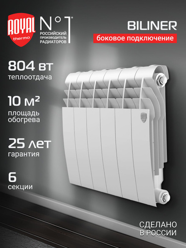 Радиатор отопления биметаллический Royal Thermo BILINER B 350 Белый - 6 секц., боковое подключение