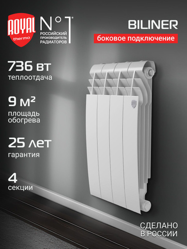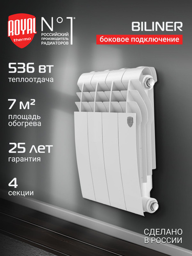 Радиатор отопления биметаллический Royal Thermo BILINER B 350 Белый - 4 секц., боковое подключение