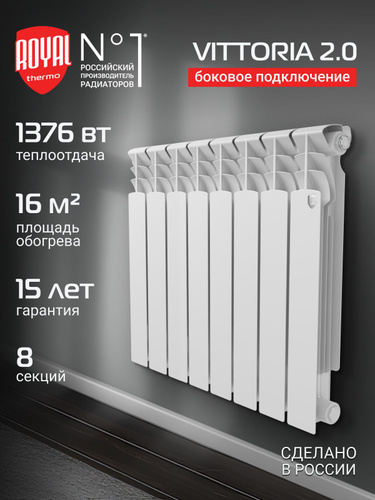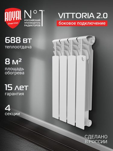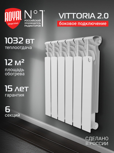 Радиатор отопления биметаллический Royal Thermo Vittoria 2.0 500 - 6 секц., боковое подключение / батарея