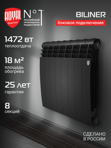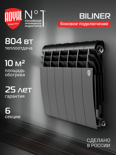 Радиатор отопления биметаллический Royal Thermo BILINER B 500 Чёрный - 6 секц., боковое подключение