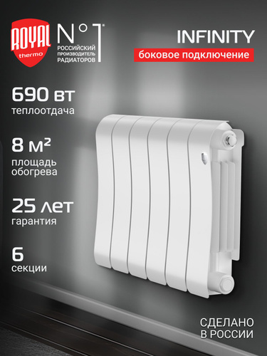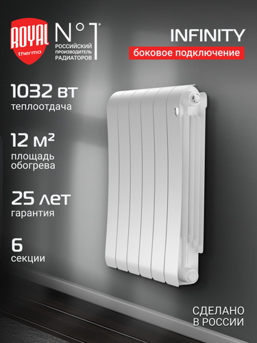 Радиатор биметаллический Royal Thermo Infinity 500 Bianco Traffico - 6 секц., боковое подключение