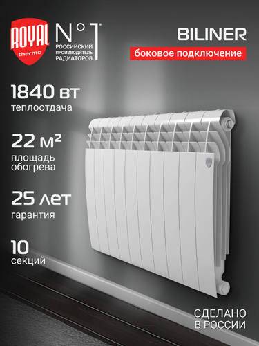 Радиатор отопления биметаллический Royal Thermo BILINER B 500 Белый - 10 секц., боковое подключение