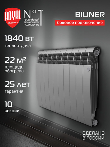 Радиатор отопления биметаллический Royal Thermo BILINER B 500 Серебристый - 10 секц., боковое подключение