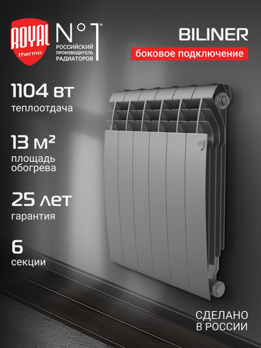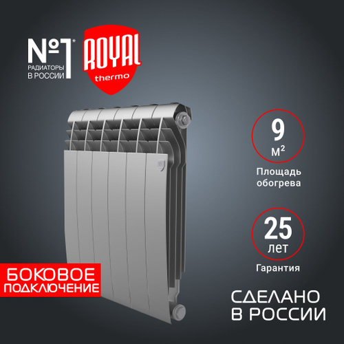 Радиатор отопления биметаллический Royal Thermo BILINER B 500 Серебристый - 6 секц., боковое подключение