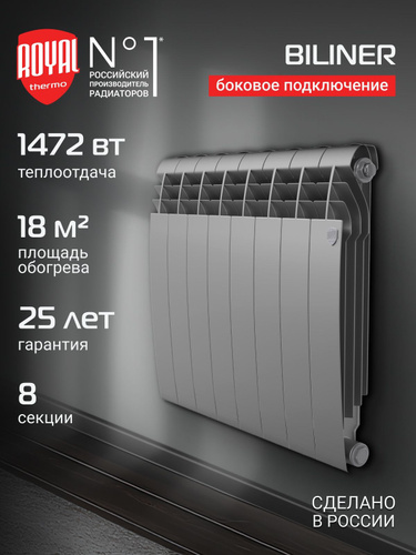 Радиатор отопления биметаллический Royal Thermo BILINER B 500 Белый - 8 секц., боковое подключение