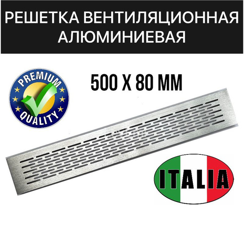 Решетка вентиляционная металлическая 500х80 мм СЕРАЯ для мебели, кухни, цоколя, подоконника ИТАЛИЯ