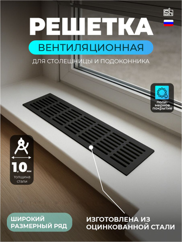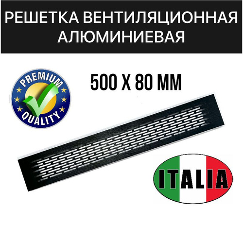 Решетка вентиляционная металлическая 500х80 мм ЧЕРНАЯ для мебели, кухни, цоколя, подоконника ИТАЛИЯ