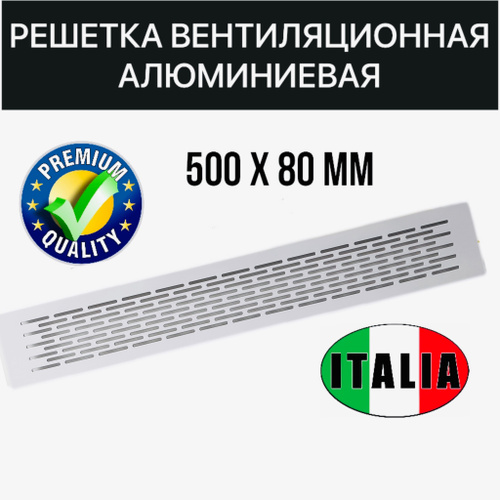 Решетка вентиляционная металлическая 500х80 мм БЕЛАЯ для мебели, кухни, цоколя, подоконника ИТАЛИЯ