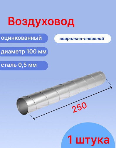 Воздуховод оцинкованный спирально-навивной диаметром 100 мм (длиной 250 мм, 1 шт.)