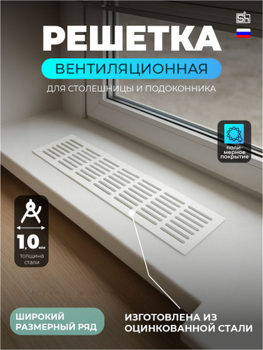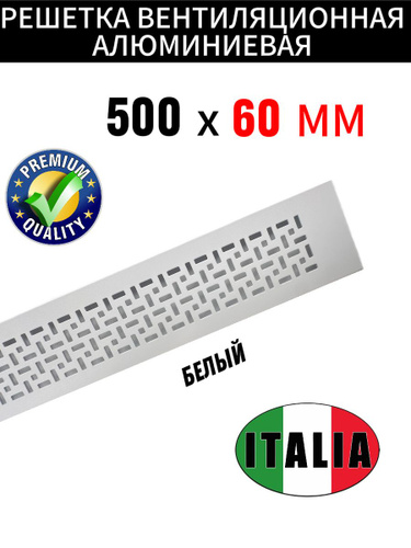 Решетка вентиляционная металлическая 500х60 мм БЕЛЫЙ для мебели, кухни, цоколя, подоконника ИТАЛИЯ