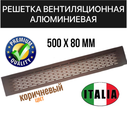 Решетка вентиляционная металлическая 500х80 мм КОРИЧНЕВЫЙ для мебели, кухни, цоколя, подоконника ИТАЛИЯ