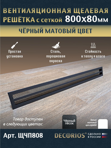 Решётка вентиляционная щелевая DECORIOS / 800х80мм / металлическая, с сеткой.