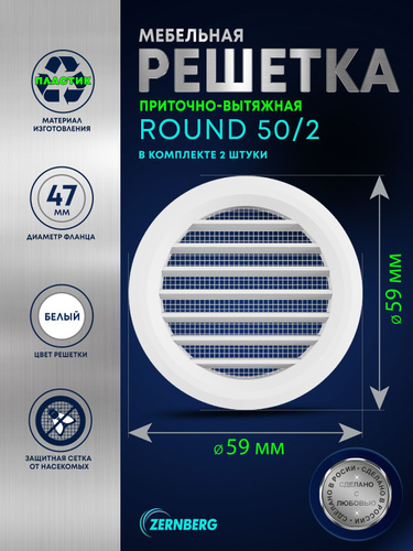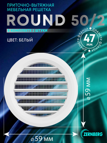 Решетка вентиляционная с сеткой Round 50/2, 2 шт в комплекте