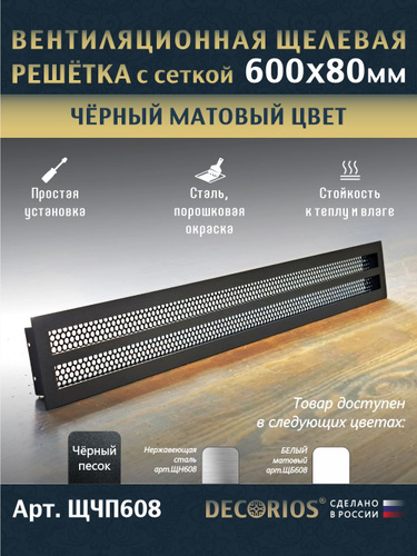 Решётка вентиляционная щелевая DECORIOS / 600х80мм / металлическая, с сеткой.