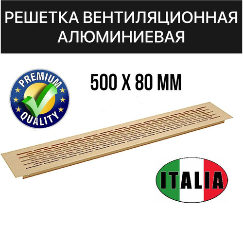 Решетка вентиляционная металлическая 500х80 мм ЗОЛОТО для мебели, кухни, цоколя, подоконника ИТАЛИЯ