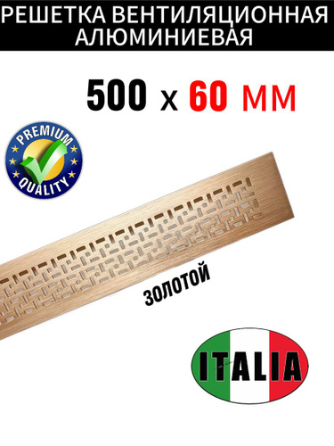 Решетка вентиляционная металлическая 500х60 мм ЗОЛОТО для мебели, кухни, цоколя, подоконника ИТАЛИЯ