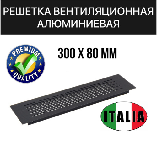 Решетка вентиляционная металлическая 300х80 мм ЧЕРНАЯ для мебели, кухни, цоколя, подоконника ИТАЛИЯ