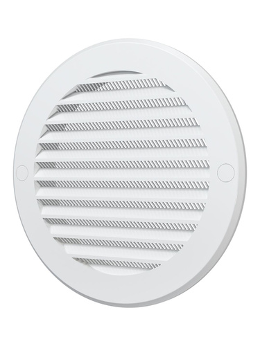 10РКС Решетка вентиляционная вытяжная круглая с сеткой, внешний диаметр 136мм, с фланцем диаметром 100 мм, ABS пластик, белая