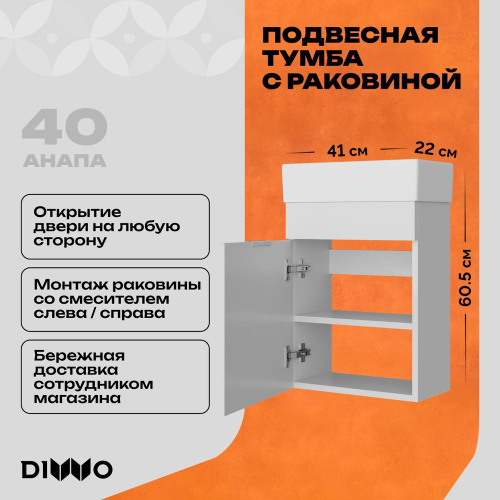 AVK Furniture Тумба под раковину навесная, Кира 1 дверь, 40х20х47 см