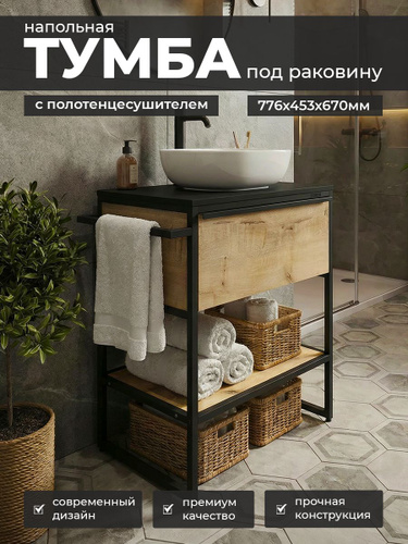 Гранд тумба под раковину в ванную комнату напольная с ящиками и полкой Лофт