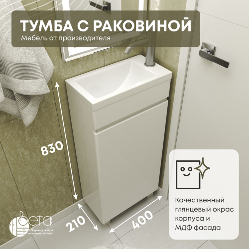 Тумба с раковиной в ванную с дверцами напольная 40 см GARDAhome БРАВО BV-T40W-V