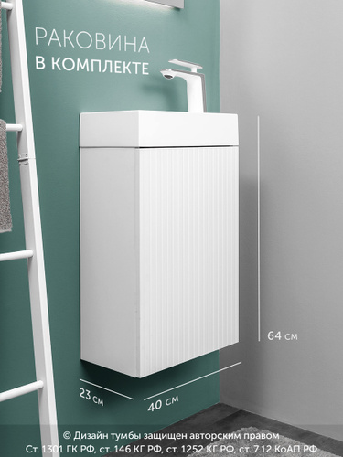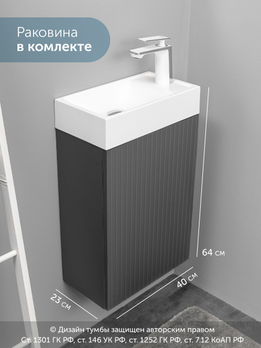 Тумба с раковиной в ванную с дверцей 40 см GARDAhome ИЗЕО IZ-T40KT-V