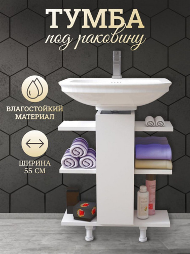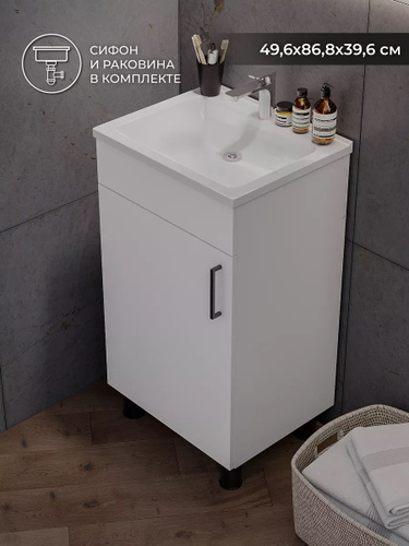 Тумба напольная с раковиной в ванную, 49.6х86,8х39,6см, белая