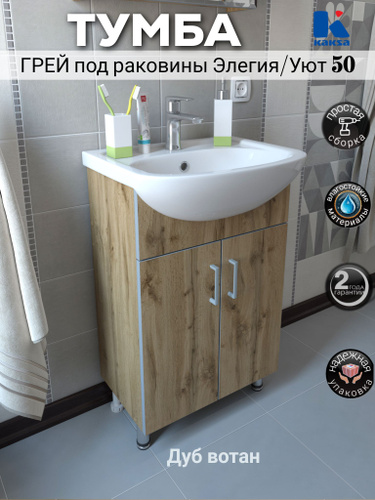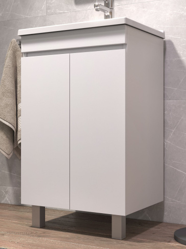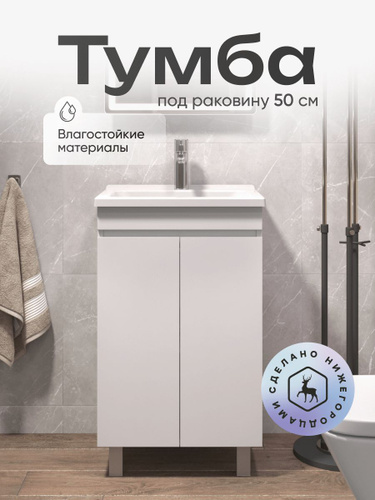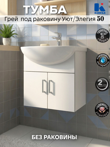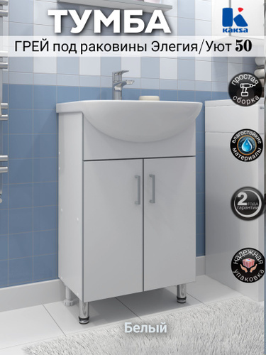 Тумба напольная "Грей 50 белая" ТРЕБУЕТ СБОРКИ под раковину Элегия и Уют 50 для ванной комнаты Kaksa