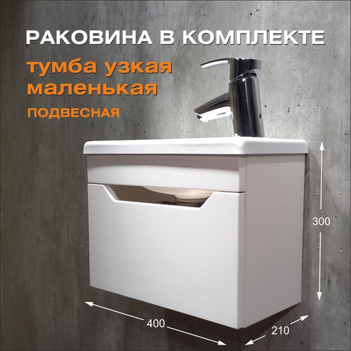 Тумба с раковиной в ванную узкая, Натали 40 левая, 40х21х80 см