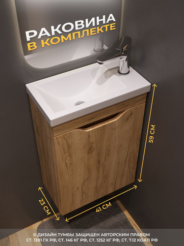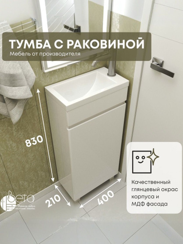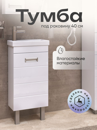 Тумба с раковиной в ванную с дверцей 40 см GARDAhome ИЗЕО IZ-T40K-V