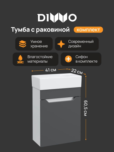Тумба с раковиной в ванную с дверцей 40 см GARDAhome ПИКАНТЕ PI-T40W1-S
