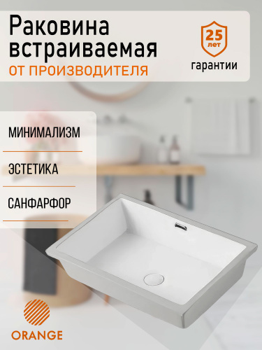 Раковина встраиваемая снизу Orange B02-600W санфарфор, белый глянец