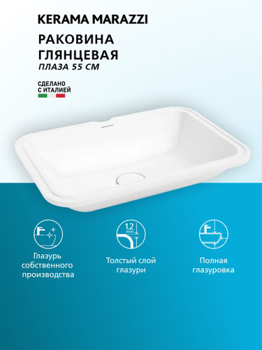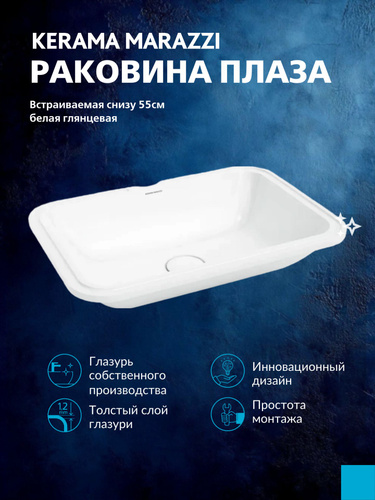 Раковина KERAMA MARAZZI PLAZA/ПЛАЗА встраиваемая снизу, 55 см, белая глянцевая, PLR.wbu.55