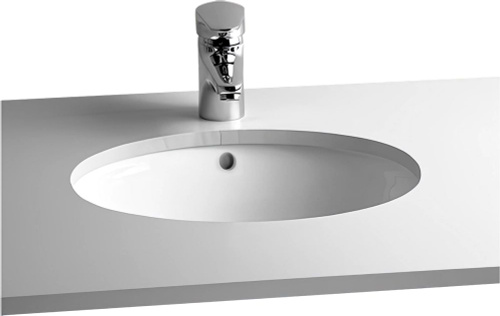 Раковина встраиваемая снизу Roca Berna 327871001 56 без отверстия под смеситель, фарфоровая, раковина для ванной, белая, овальная, со встроенным сливом-переливом