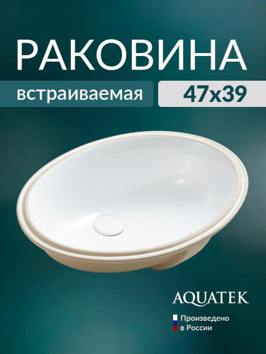 Раковина для ванной встраиваемая 50 овальная белый Aquatek