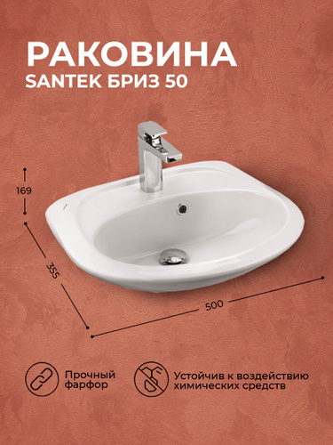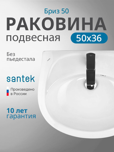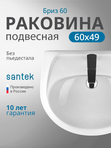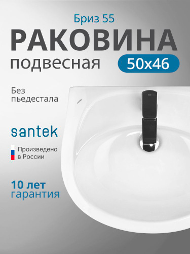 Раковина подвесная для ванной, мебельная для тумбы 55 Santek Тигода