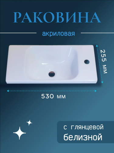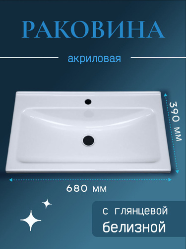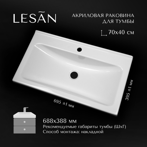 Лёгкая раковина 70*40, акриловая, накладная на тумбу, белая глянцевая LESAN